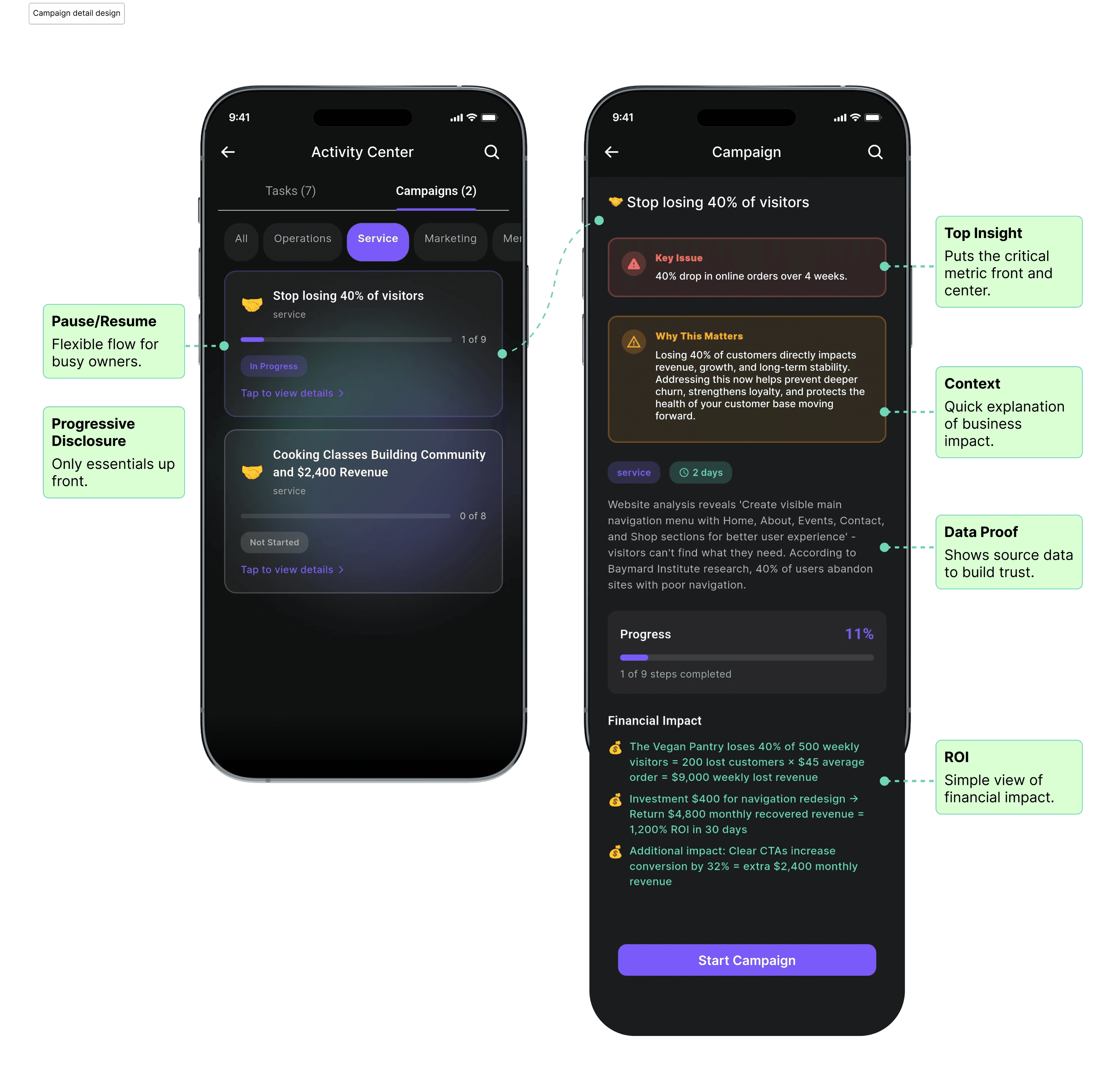 Impact: Task completion increased by 65%, user confusion dropped 70%, and willingness to act improved.