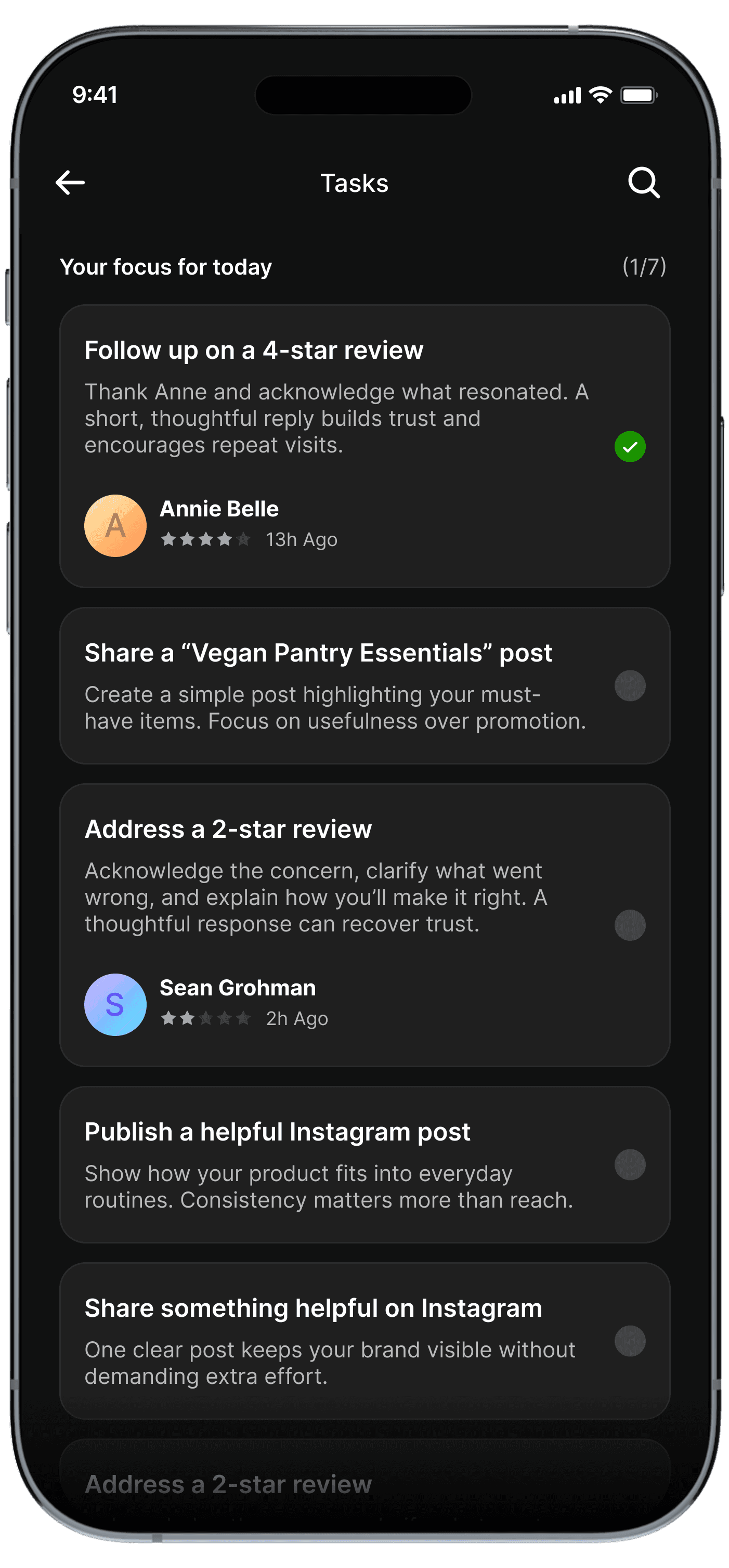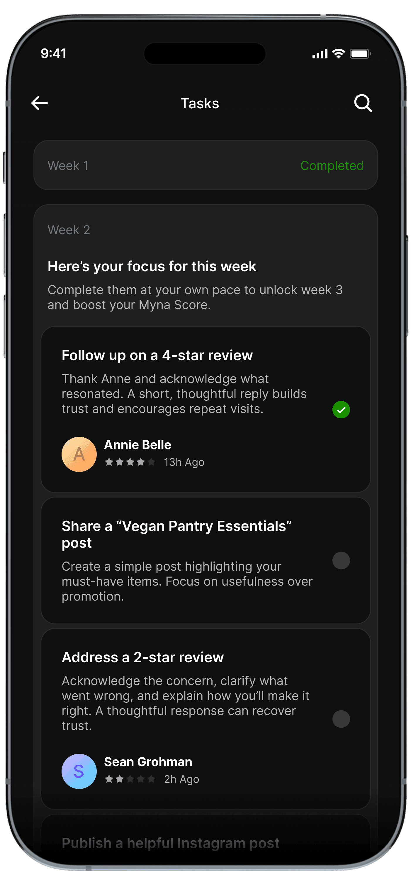Owners completed weekly tasks within 1-2 days.