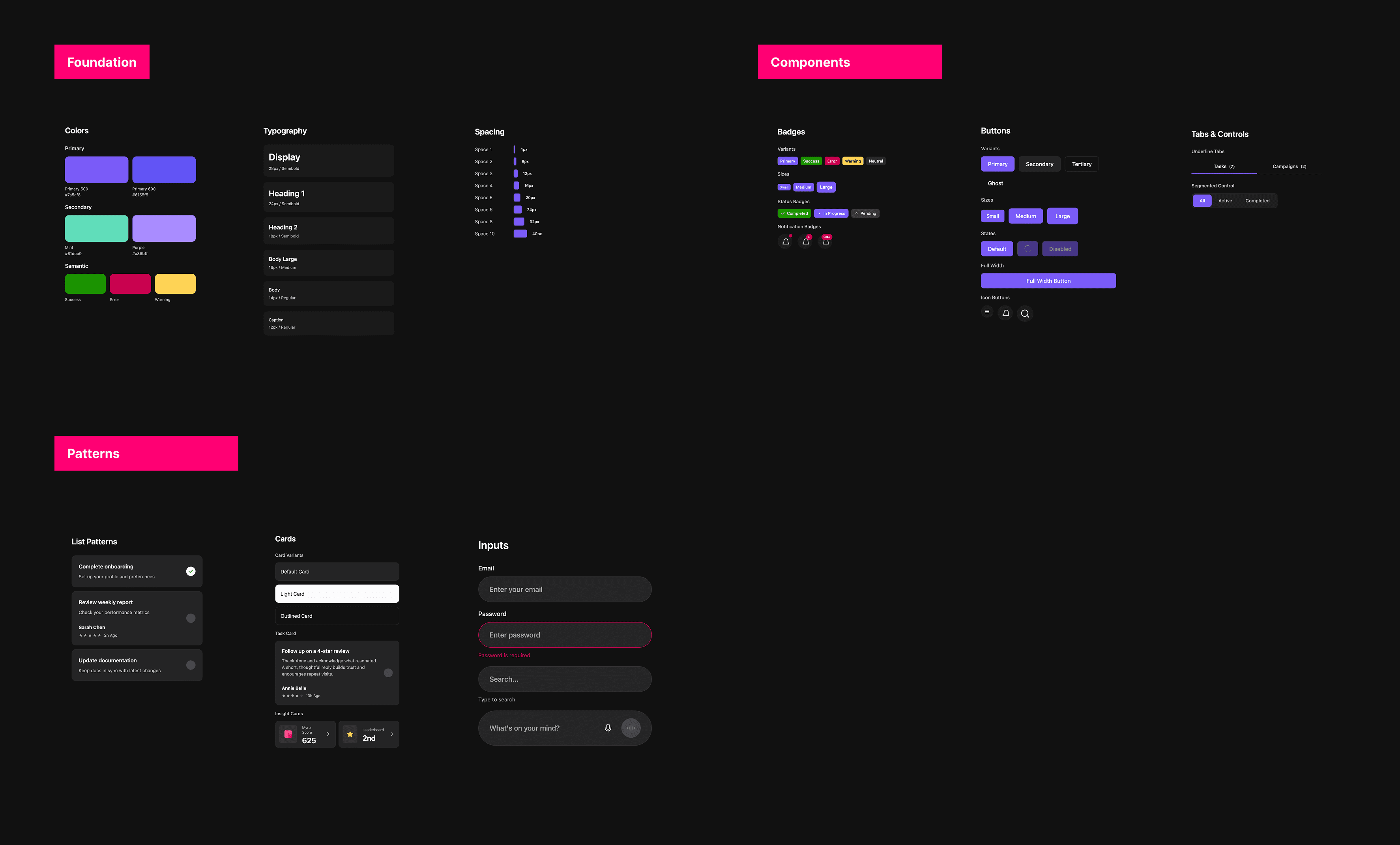 I built a lightweight design system to support the growing product: foundations (color, typography, spacing), components using atomic design principles, and reusable interaction patterns. These patterns enabled scale without reintroducing cognitive load.