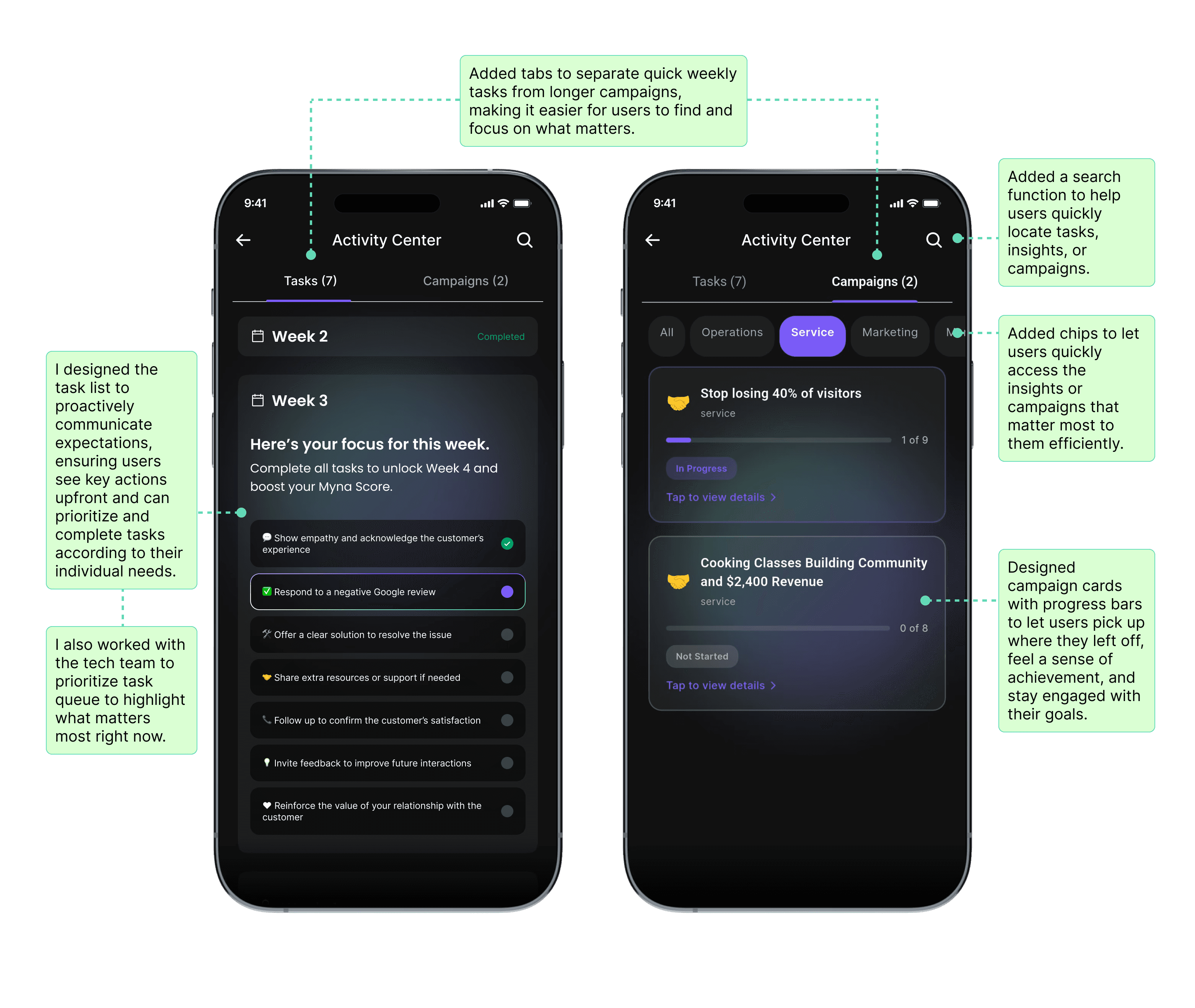 That shift in expectation was my signal to rethink the experience beyond just the task list. It pushed me to reimagine the product as something that supports owners throughout the week, not just something they open to “get things done.”