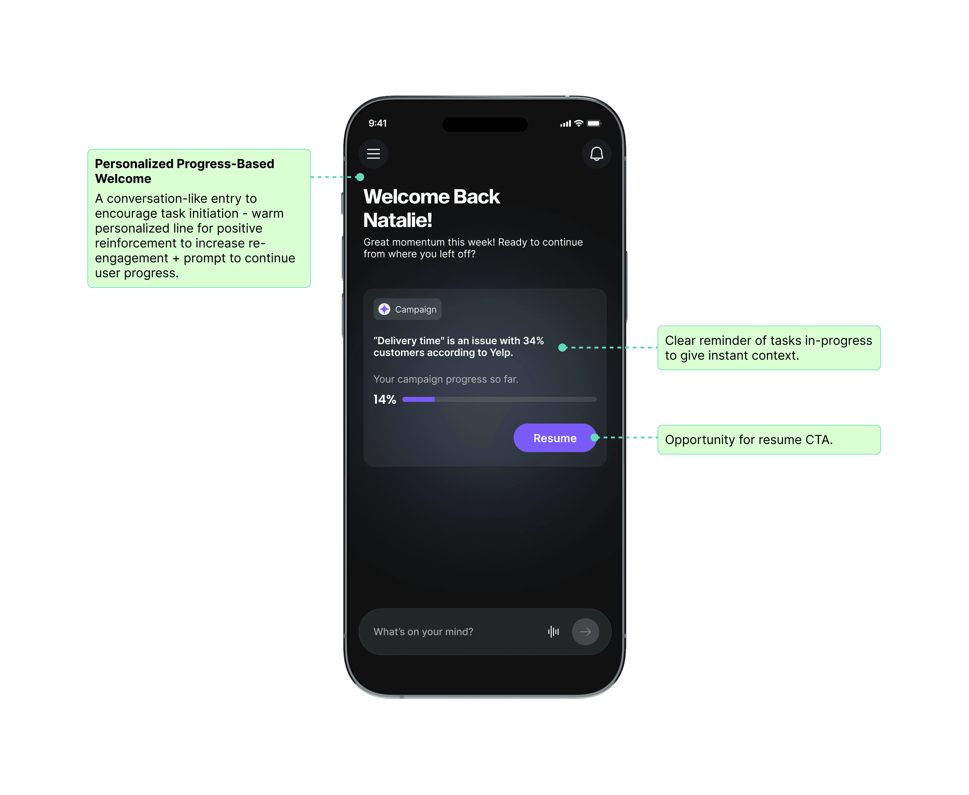 A weekly progress card to show improvements and to nudge them to stay engaged and demonstrate tangible impact.