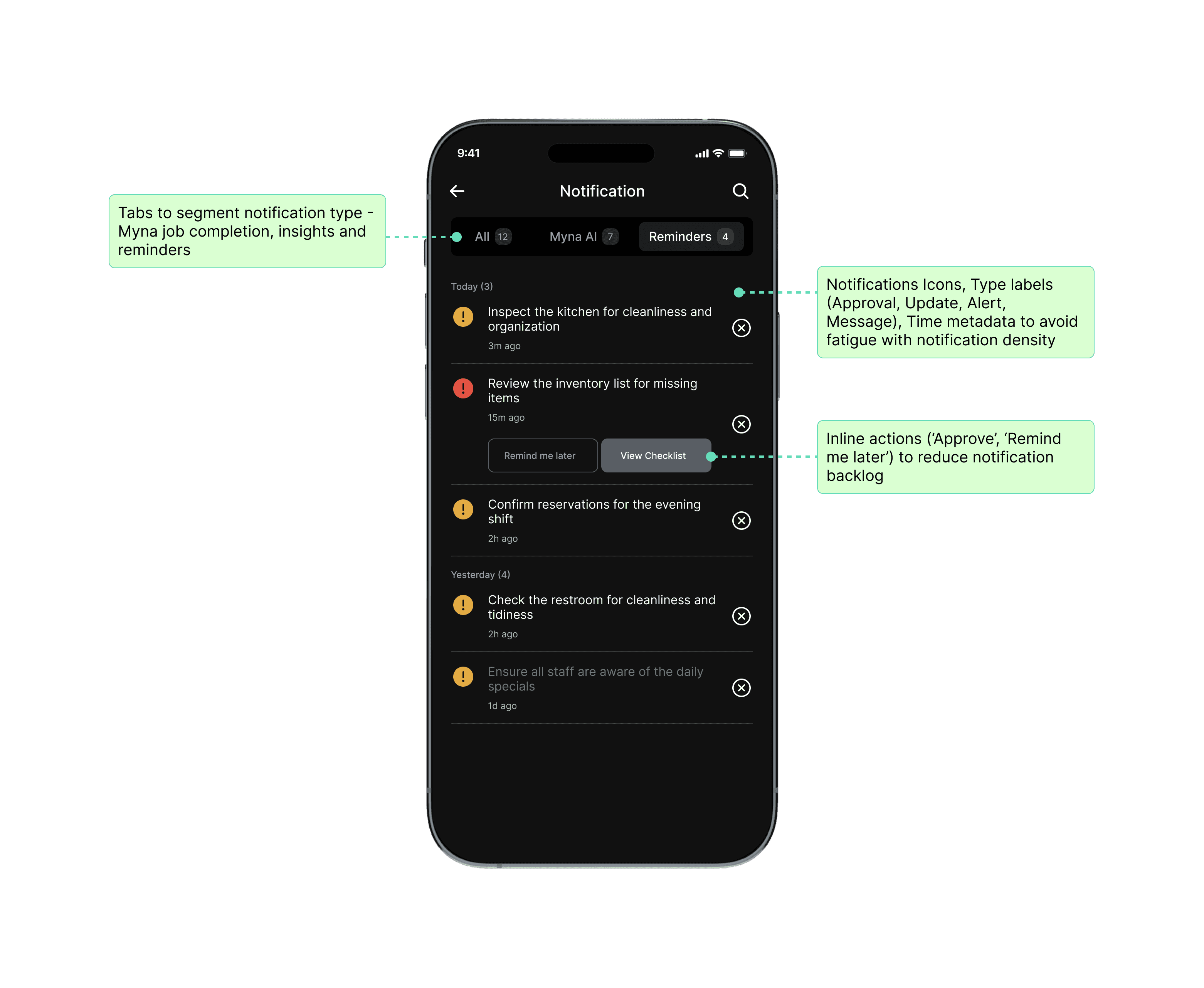Owners hesitated with the swipe UI because they couldn’t see the context behind each action. To address this: